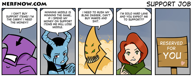 People who settle into support role in MOBAs learn to live with this shit. Besides, it's not our fault if you fuck up and the team loses. You asked us to ward, not to fight.