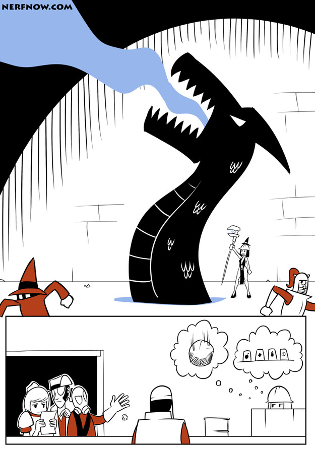 Next strip: spy emerges from a dark corner as a rogue and saps that sentry-dragon.
