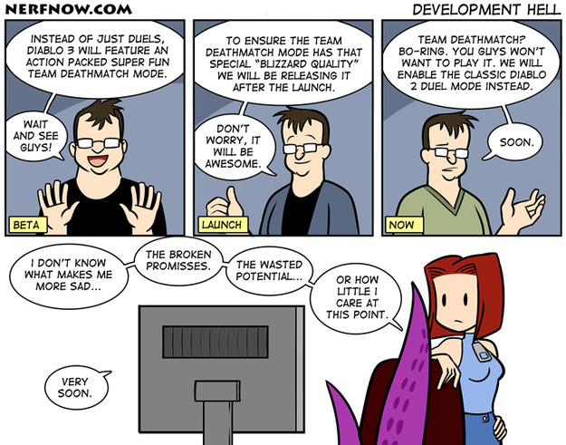 This strip is entirely true. Blizzard has highly over-promised and under-delivered on Diablo 3. It's their way these days. Shame.