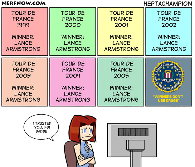 FBI apparently had a saying of winners don't use drugs, Lance Armstrong did and won.