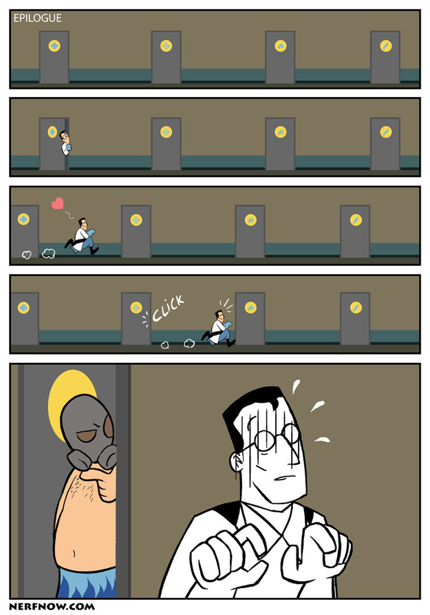 Anyway, why's the pyro looking down on the medic? He was just in Sniper-Tan's room!
